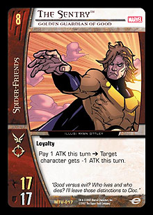 While his stats aren’t much bigger than those of the average 7-drop, Sentry’s “Pay ATK” power can drastically hinder an opponent’s attacking options in the late game.